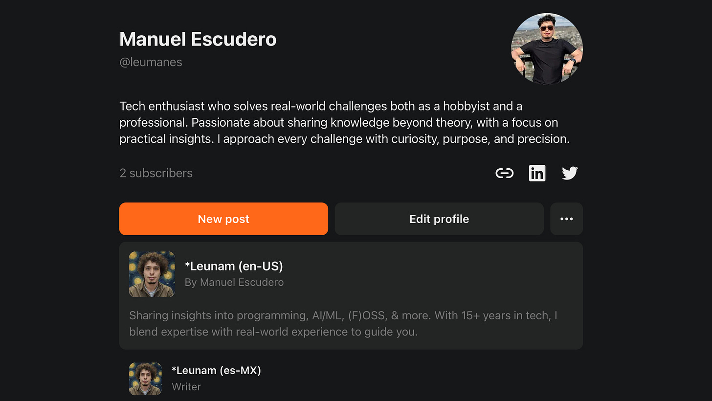 El mundo de la tecnología no se detiene, y con mis años de experiencia, todavía tengo mucho que compartir. Después de mucho investigar y reflexionar, he decidido utilizar Substack como un nuevo canal para escribir, crear contenido audiovisual y compartir conocimientos con ustedes. Ya no como una entidad corporativa (o necesariamente parte de una), sino simplemente como Manuel Escudero, con todo tipo de formatos de contenido condensados en un mismo sitio.